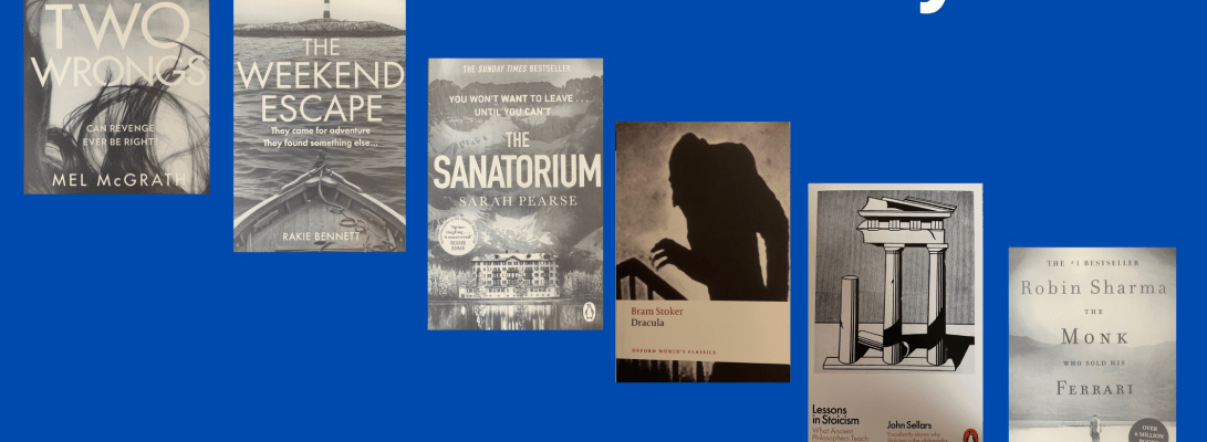 The psychological thrillers all had very different settings – Two Wrongs is set in a fictional university and involves a spate of suicides among female students; The Weekend Escape is set on a stormy island off the coast of North-West England; and The Sanatorium is set in a creepy hotel, a former sanatorium, in snowy Switzerland. I enjoyed them all, but The Weekend Escape was my favourite as it was so fast paced!
