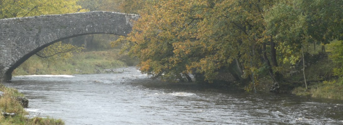 The River Ribble seems to meander quite peacefully under the old stone packhorse bridge until it reaches the waterfall where it swirls and crashes against the limestone rocks.
